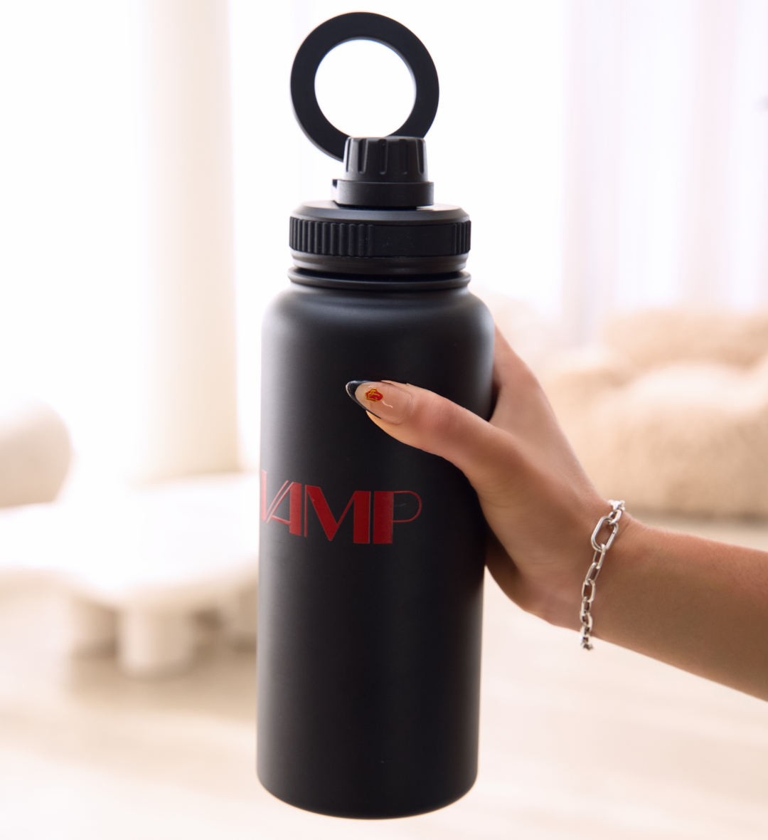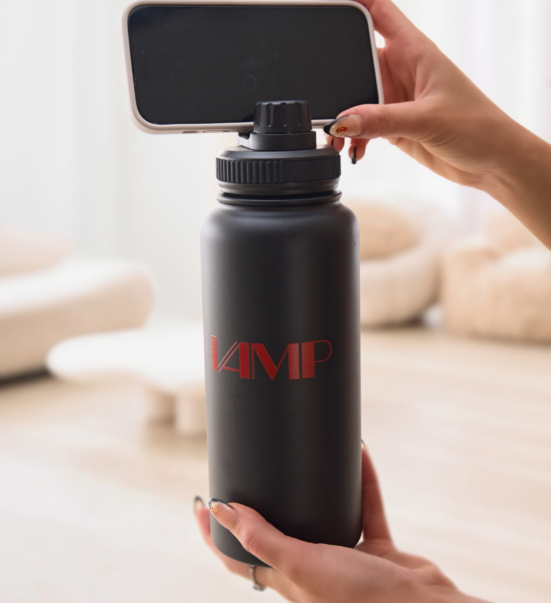 Calling this selfie water bottle a game-changer is honestly an understatement. Stay hydrated and serve flawless content with the VAMP-exclusive selfie water bottle that holds your phone steady. No more awkward angles, dropped phones, or "where do I lean this?" chaos.