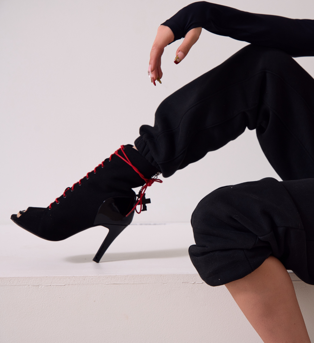 Two laces giving two energies: the red hits different (fire, fearless, full send), while the biscuit laces are a straight throwback to '90s hip-hop in heels.