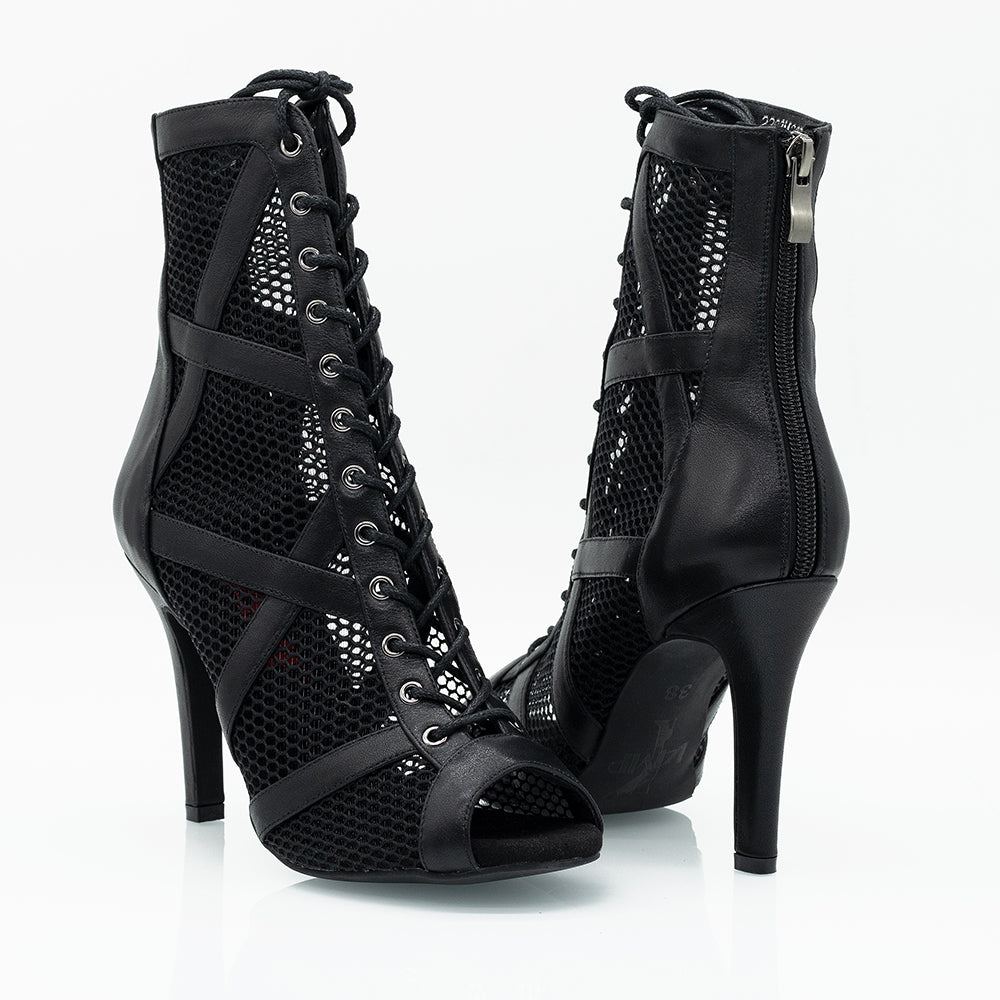 Crafted with premium black leather and breathable mesh fabrics, the Vanquish heels are perfect for dancers who want to look and feel amazing on the dance floor. The adjustable lace-up design ensures a precise fit for both narrow and wide feet, while the flexible sole and built-in gel cushioning offer maximum comfort and support during long dance sessions.