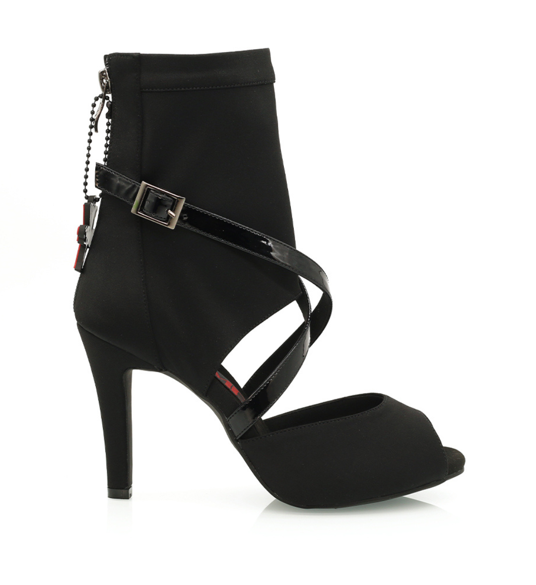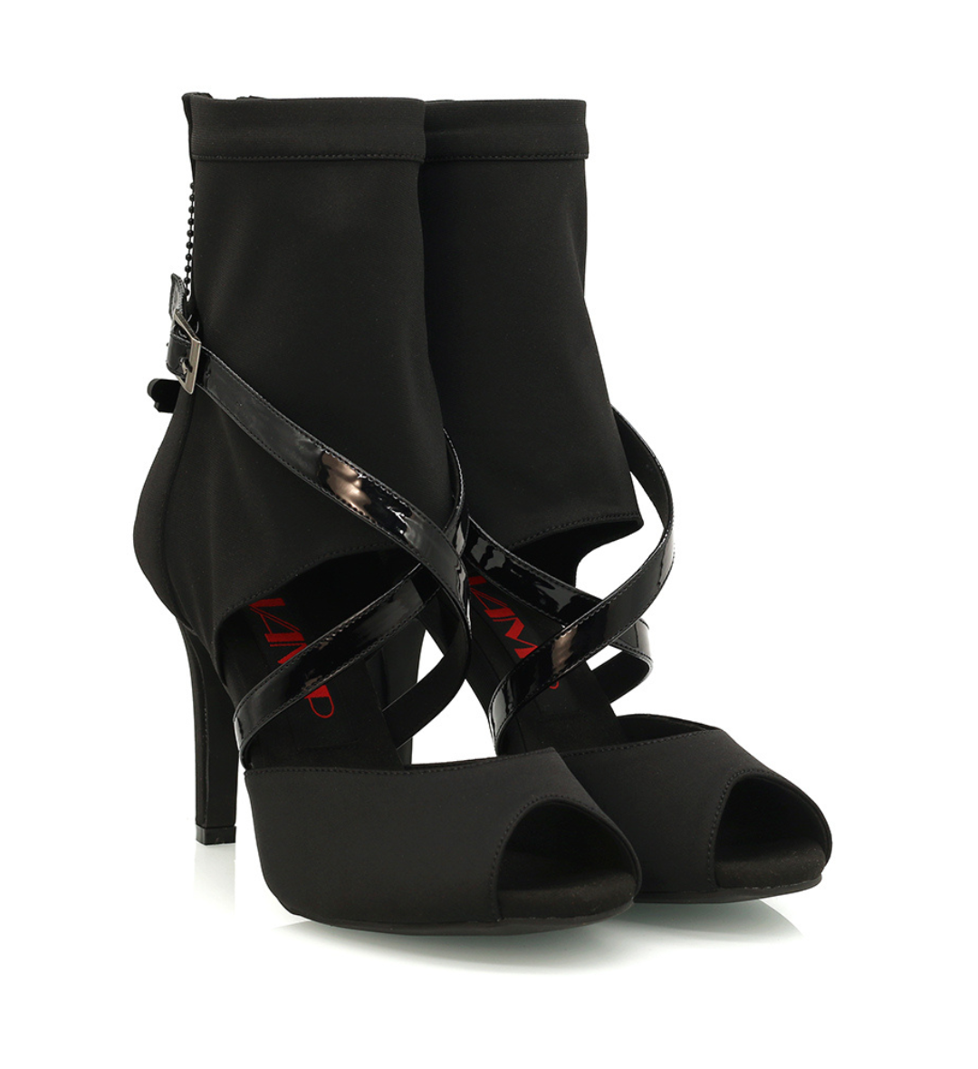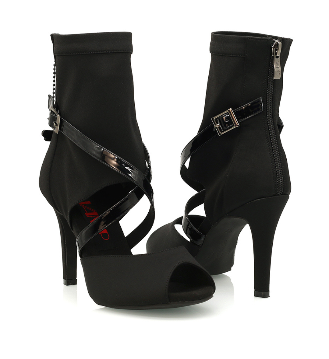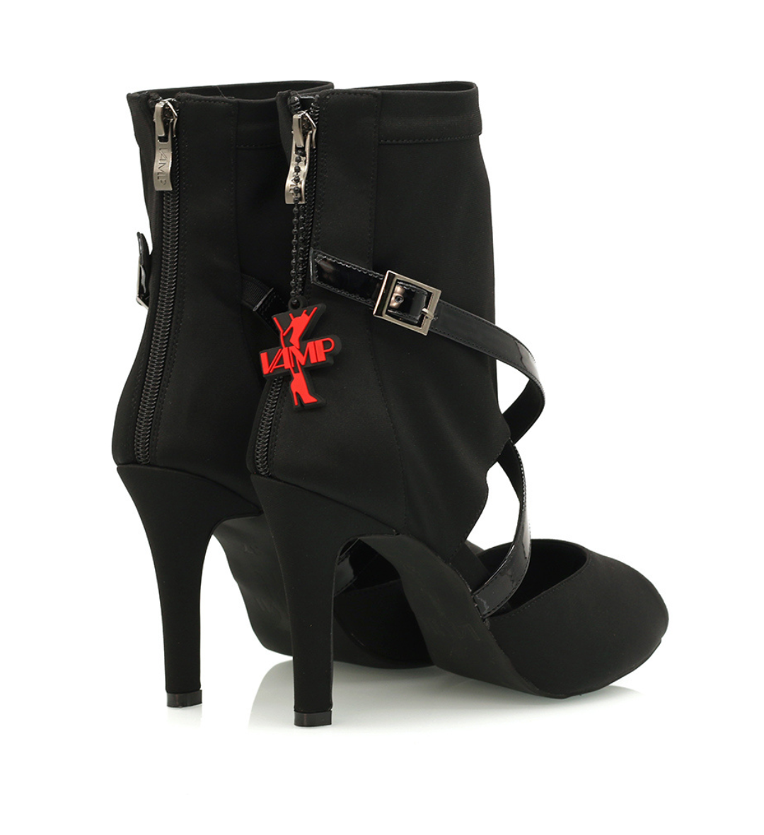Due to form, these sexy black lycra dance booties that are also designed with strength and stability in mind, VAULT features a structured lycra outer, PU leather straps finished with a silver buckle, and of course finished with the signature VAMP hanging logo keyring. Keep it attached for a cute accent or clip it onto your keychain—your call.