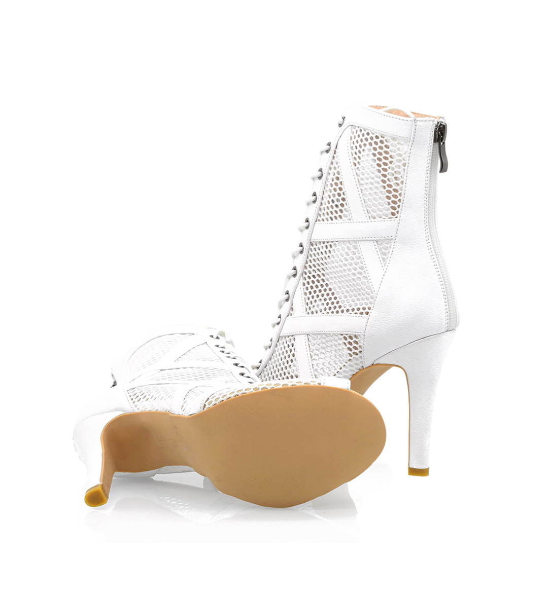 Crafted with premium leather and mesh fabrics, these heels are soft to the touch while still having the strength to give you all the ankle support you need. The front lace-up closure and back zipper provide a snug, glove-like fit, while the adjustable lace-up design ensures precision fitting for narrow and wide feet.