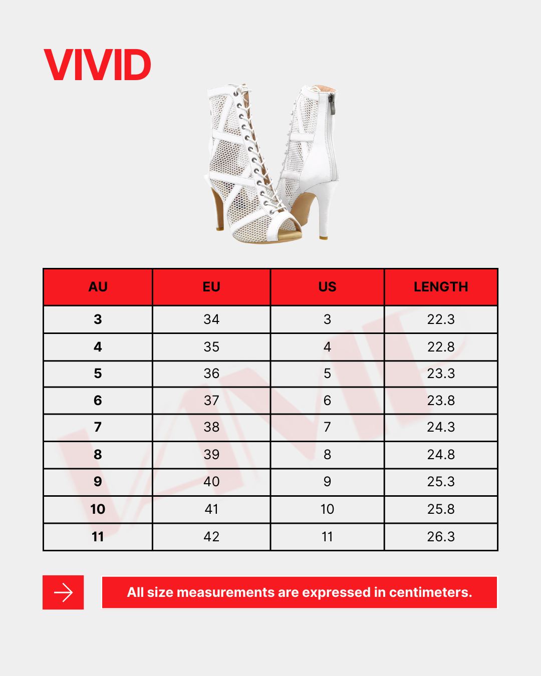 VIVID follows the shape of our bestselling VANQUISH style, now reimagined in white leather with breathable mesh panels. This lace-up open-toe heel is designed for heels dancing and built for working dancers who need structure, flexibility, and a custom fit.