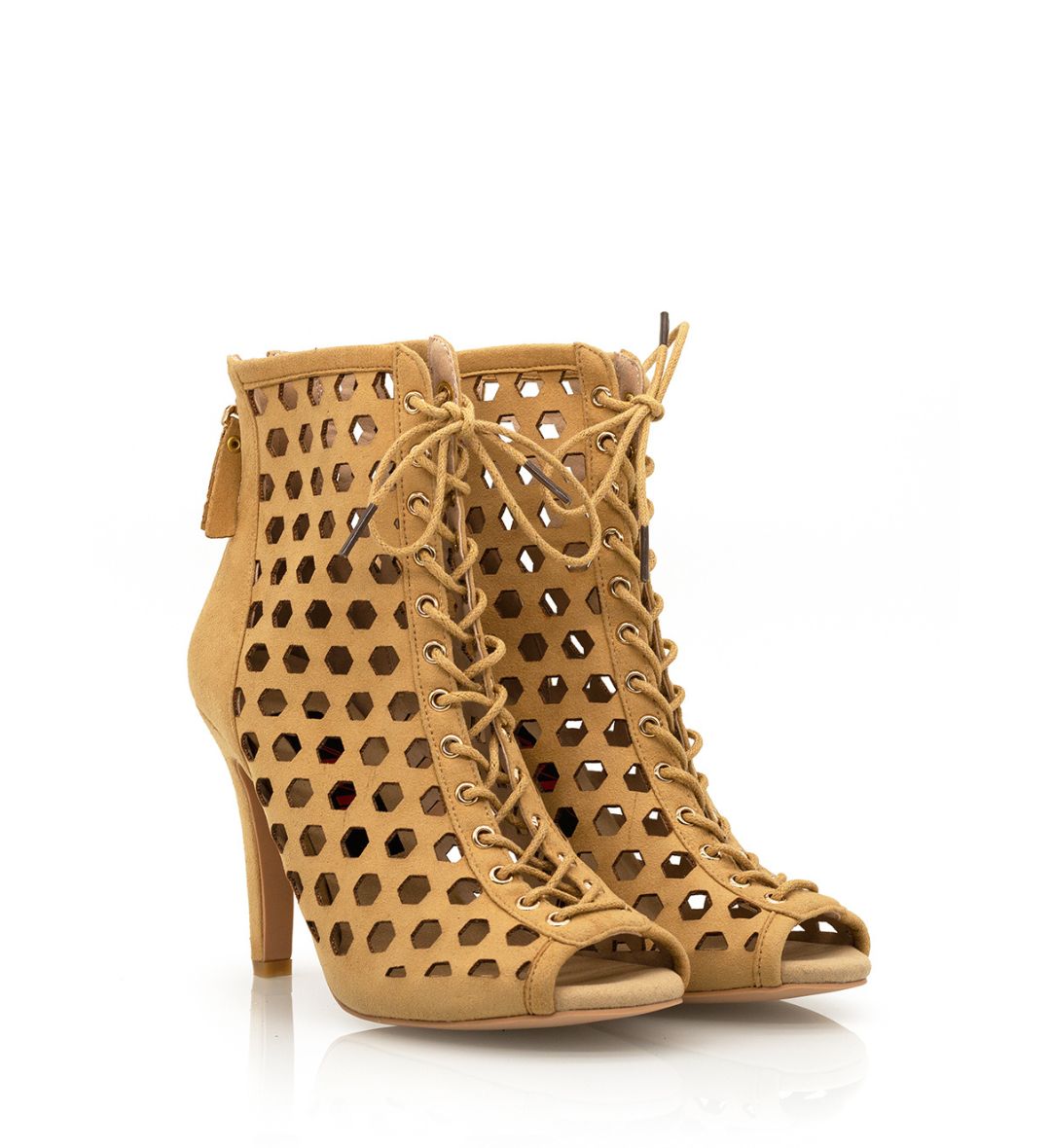 Vixen is the tan bootie essential to any heels dancer's wardrobe, subtle with the perfect amount of ankle coverage not to cut off the line of your leg. Vixen booties are made to suit any sized foot as the adjustable lace-up front allows for precision fitting, we promise you extreme comfort and the perfect amount of flexibility to support every movement.