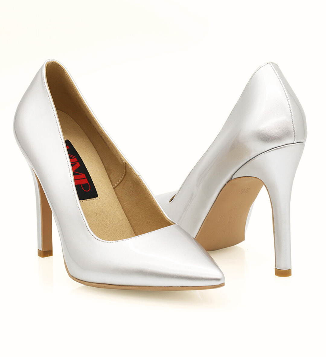 Our Signature 4 1/4" Stiletto Pumps in High-Shine Silver